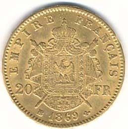 | 20 francs or Napoléon III, tête laurée, grand BB - 1869 |